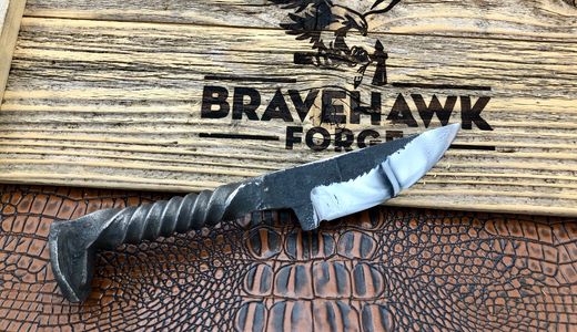In this one day class you will forge your very own Rail-Road spike knife. The class will include forge welding high carbon steel to your Rail-Road spike twisting your handle, heat treating and tempering your blade. This will include the knife and sheath.